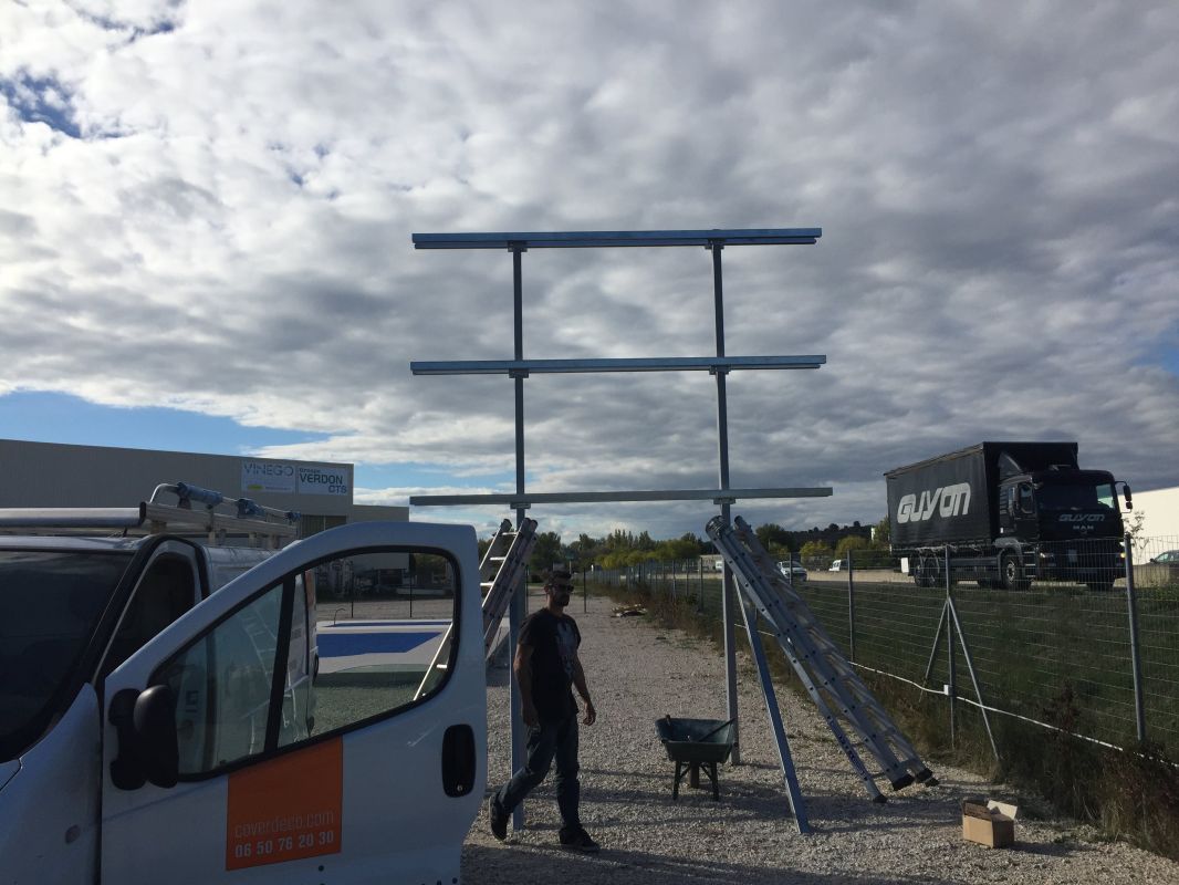 L'installation nécessite des fouilles puis des scellements béton dans le sol.