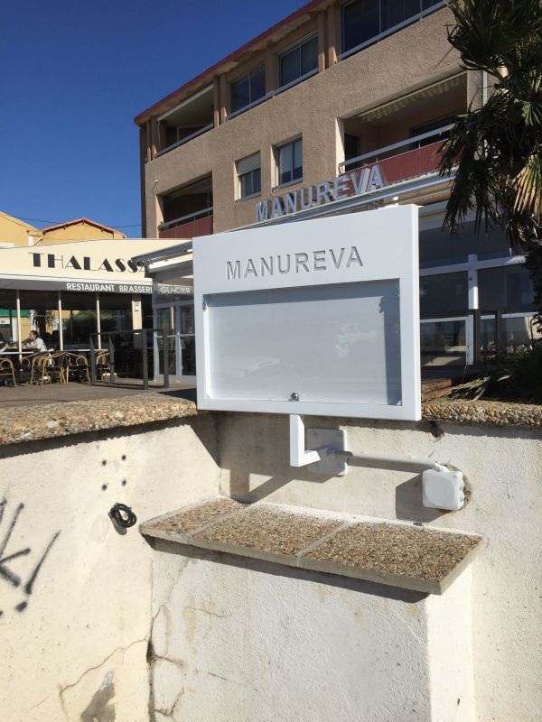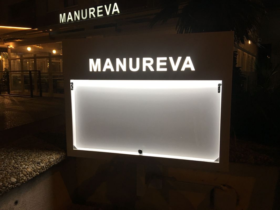 Nous avons également fabriqué un porte-menu lumineux avec le nom "Manureva" grugé dans la tôle.