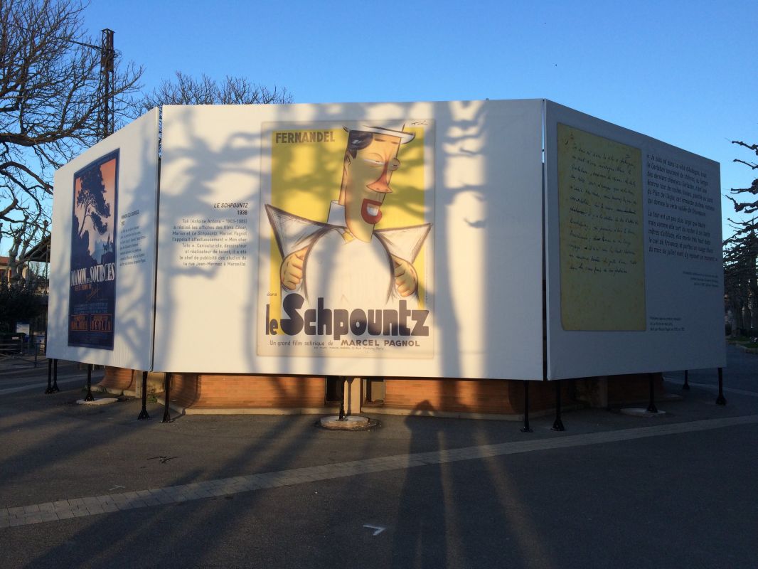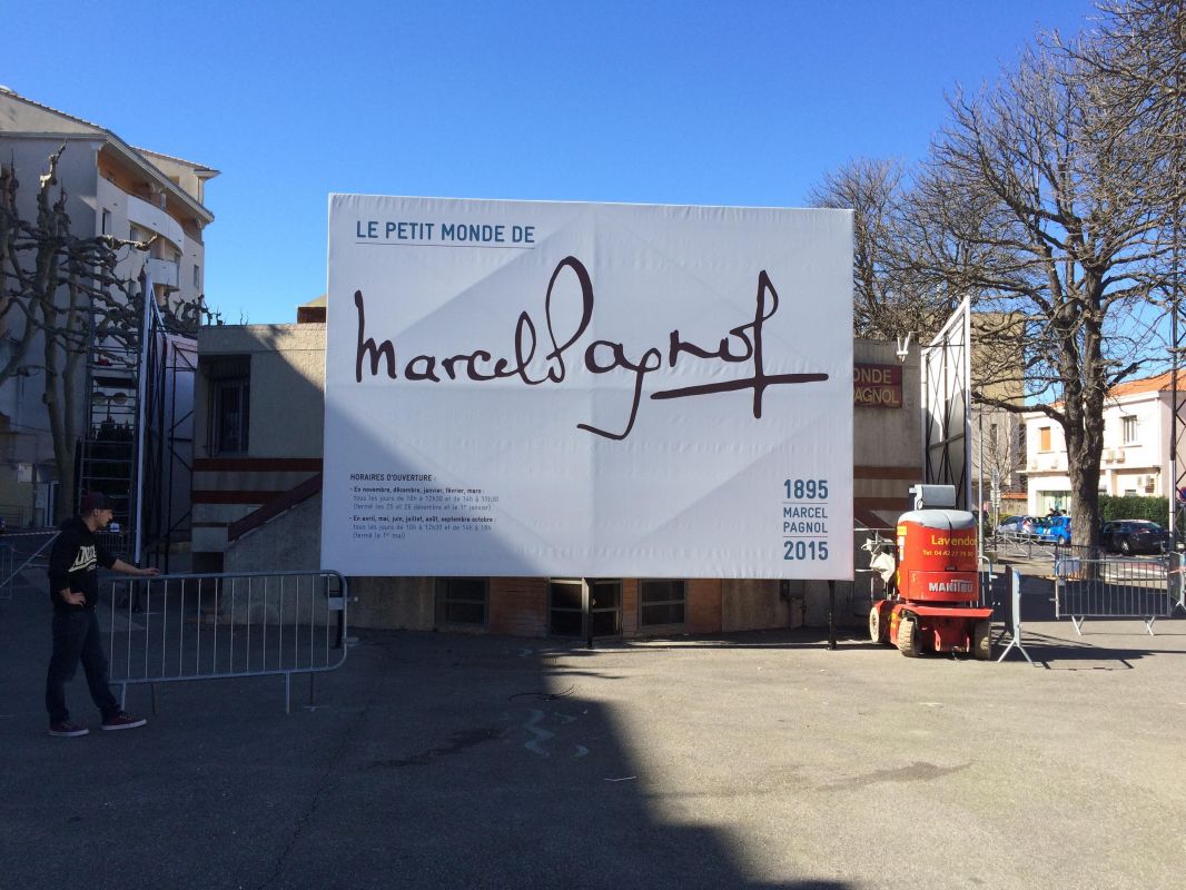 Dans le cadre de l'exposition "Le Petit Monde de Marcel Pagnol" et pour le compte de notre client Picto Méditerranée, nous avons effectué la pose de grandes bâches sur des structures métales spécialement conçues pour l'évennement.
